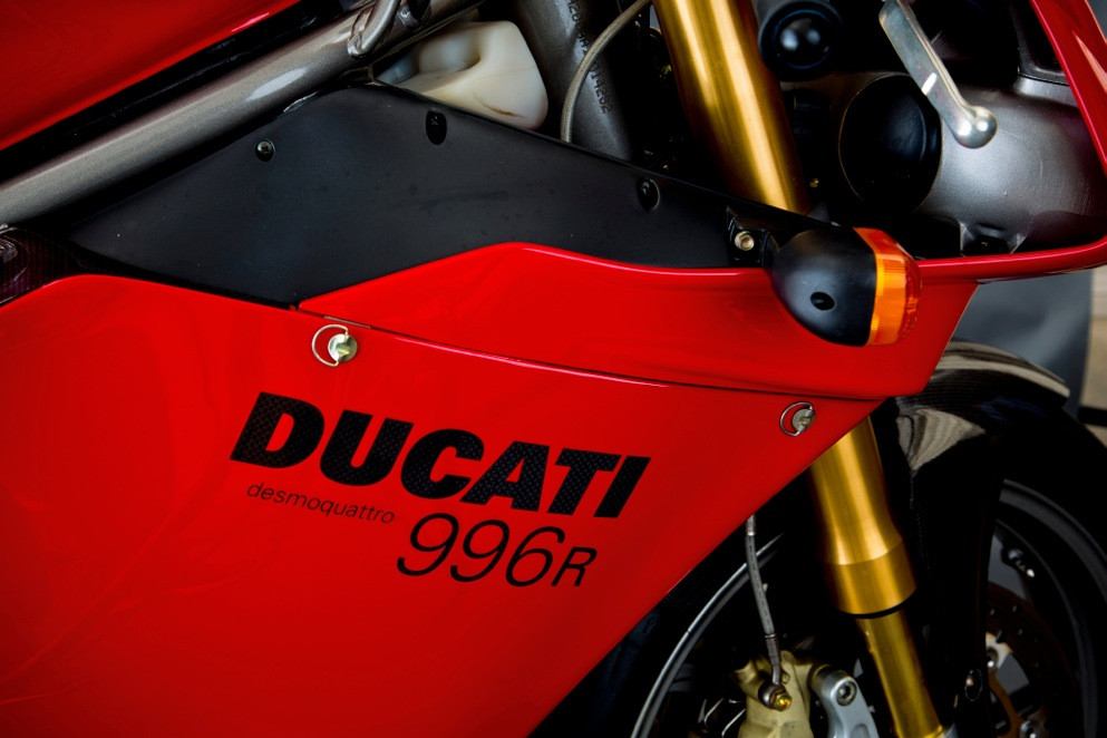 Absolutely immaculate one owner and already a collectible. This bike was bought new by Russel Crowe and is #245 of the 350 sold by the Factory for road use. This bike was stored in a humidifier for over 5 years before being purchased by the current owner who spent in excess of $5k on having it stripped and prepared for road use. Without doubt the best example of the final 996 production (the 996R uses the 998R Testastretta engine)