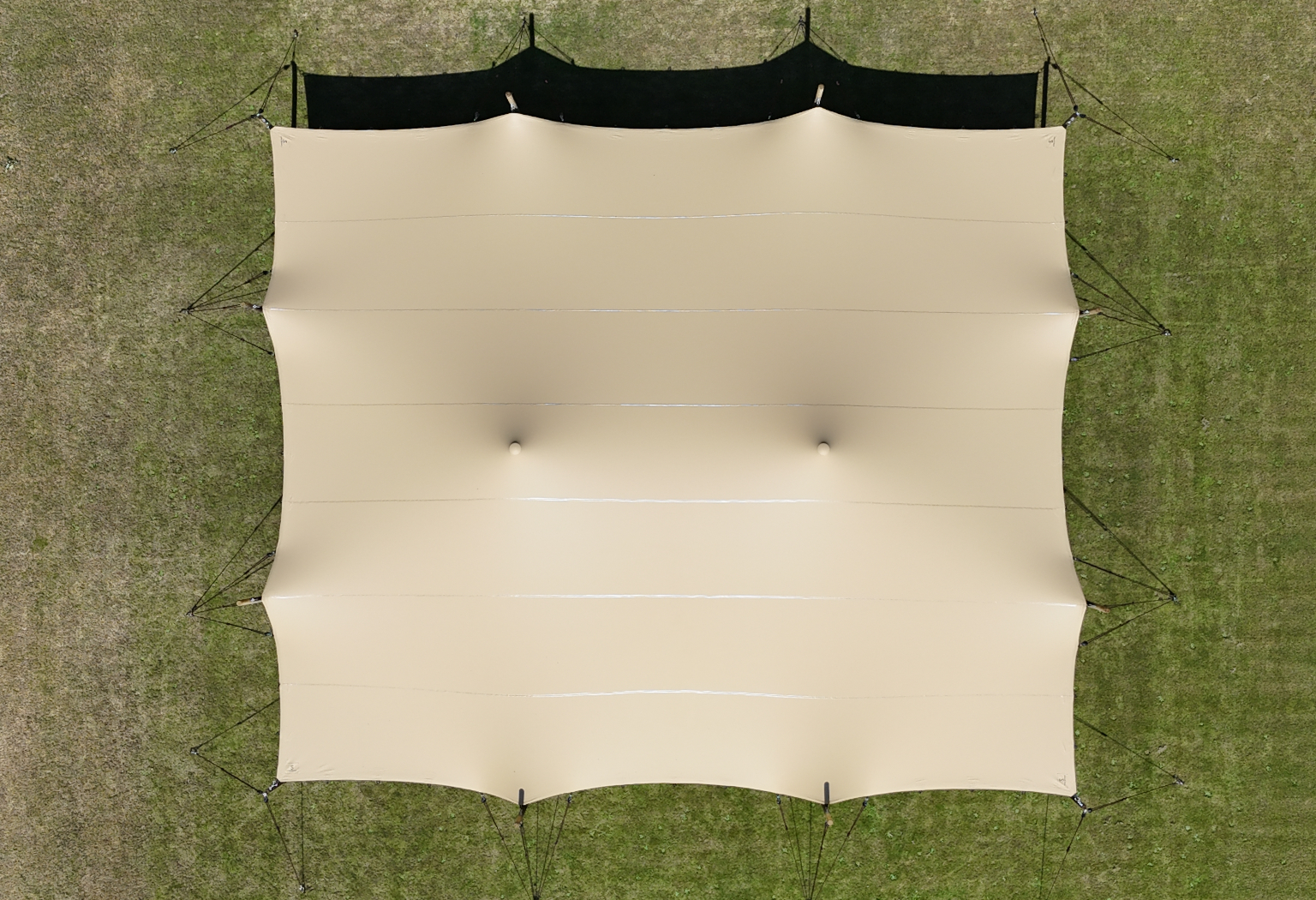 Nuestras carpas elásticas se fabrican con una meticulosa atención al detalle y a la calidad. El tejido de 720 g/m² está recubierto por una cara y presenta un acabado textil técnicamente avanzado en la parte inferior, desarrollado exclusivamente por nuestro equipo interno. Esta combinación de materiales de alta calidad y textiles ignífugos garantiza una solución duradera y segura, asegurando que su evento no solo sea cómodo, sino también sin preocupaciones.