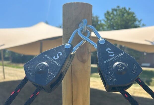 El tensor Rope Ratchet tensa las cuerdas. Gracias a su mecanismo de autobloqueo, la cuerda no se recupera. Esto simplifica enormemente el montaje y tensado de la tienda.