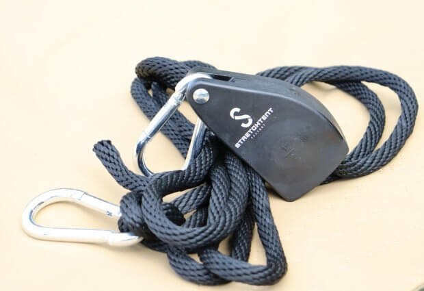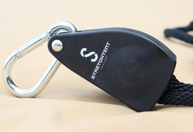 El tensor Rope Ratchet (1/2″) incluye dos mosquetones y 400 cm de cuerda. Cada uno tiene una resistencia a la tracción de 250 kg. En resumen, es indestructible.